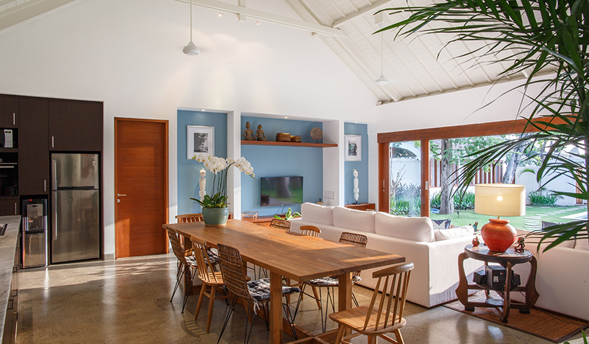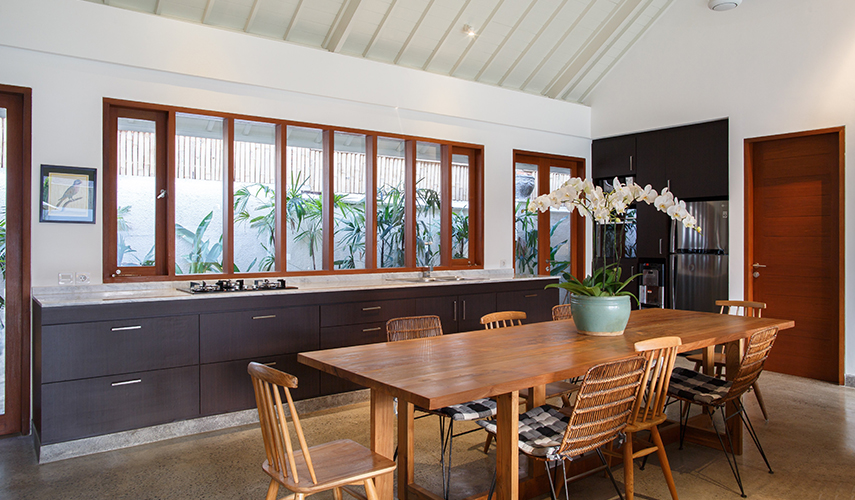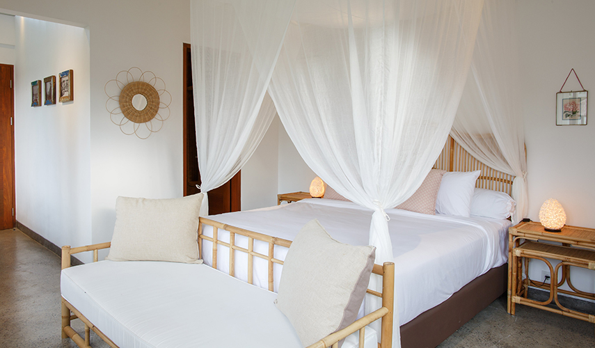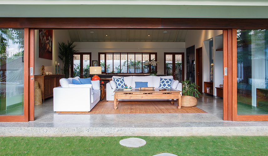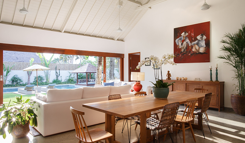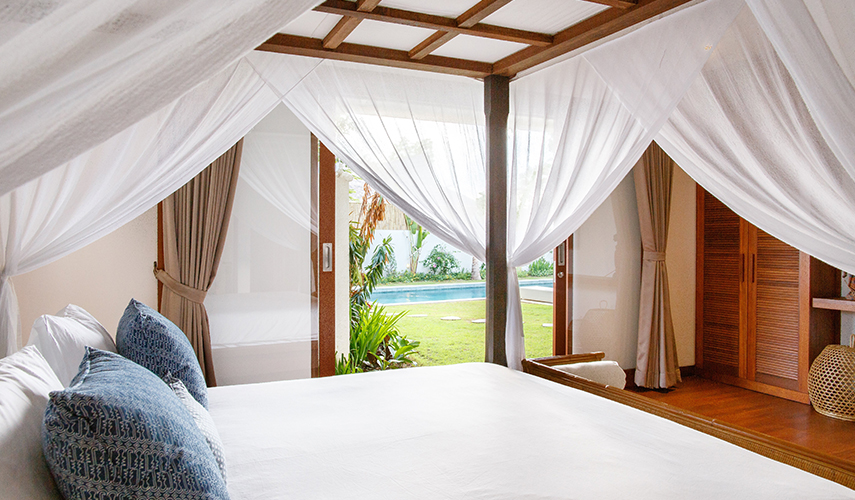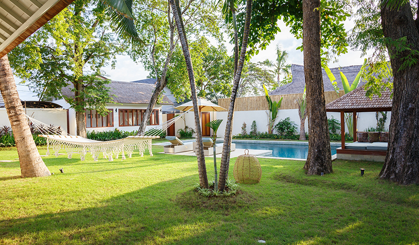 Le jardin est tout simplement magnifique avec ses plantes exotiques et son herbe verdoyante. Ce jardin est entouré d'une impressionnante piscine de 13 × 5 qui vous invite à venir vous rafraîchir après une belle journée sur l'île des dieux.