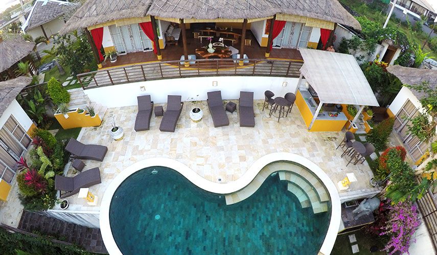 Belle villa qui possède 5 chambres dont 5 salles de bain. Profitez de la vue depuis la piscine de 9 x 4.