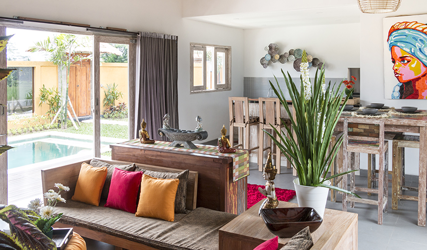 Les aménagements ont été conçus en fonction des besoins de la vie indonésienne. Ainsi, chaque villa intègre des pièces semi couvertes comme la salle de bain ouverte sur un jardin intérieur et une terrasse ouverte sur la piscine, qui constituent de réels espaces de vie tout à fait adaptés au mode de vie local.